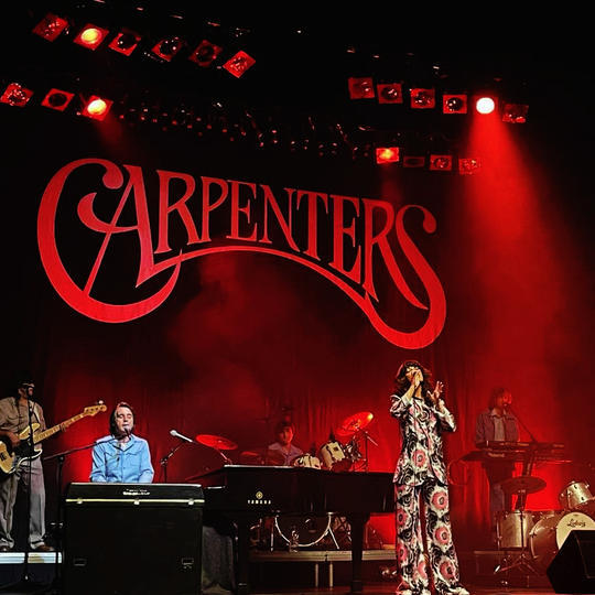 Carpenters Gold authentically performs their Greatest hits, such as Goodbye to Love, Solitaire,  We've Only Just Begun, Top of the World, Yesterday Once More, Superstar, plus many more;  recreating the look and sound of their worldwide 1970 tours, including a special highlight where 'Karen' plays the drums with her full live backing band. The iconic voice of Karen Carpenter is a magically soothing one, and few vocalists can attempt to emulate her accurately.  But International West End vocalist Vikki Holland-Bowyer has the warm dulcet tones which sound uncannily similar to the superstar. She undertakes the character of Karen superbly, paying meticulous attention to her mannerisms, 'brother – sister' relationship with 'Richard', and the playful interaction with her band and audience. 'Richard Carpenter', played by musical arranger vocalist Greg Stevenson, is also featured in the show performing on the piano, alongside his 'sister' enjoying on stage humour, often introducing the array of hits whilst light-heartedly engaging with his musicians. Carpenters Gold supremely captures how they were ‘live in concert’ and is a must for all fans of the fantastic Karen and Richard.